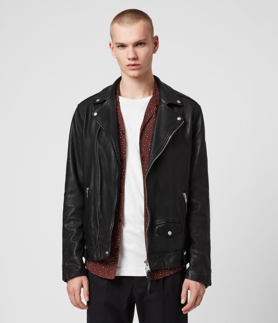 The Hedworth Biker is made from soft lamb leather with authentic biker jacket details, including a ticket pocket and snap fastening hem loops. Featuring a vibrant red lining with a traditional Japanese wave design. Asymmetric zip front Two lower zip pockets Long sleeve Ticket pocket Hem loops Model is 6'2"/188cm...