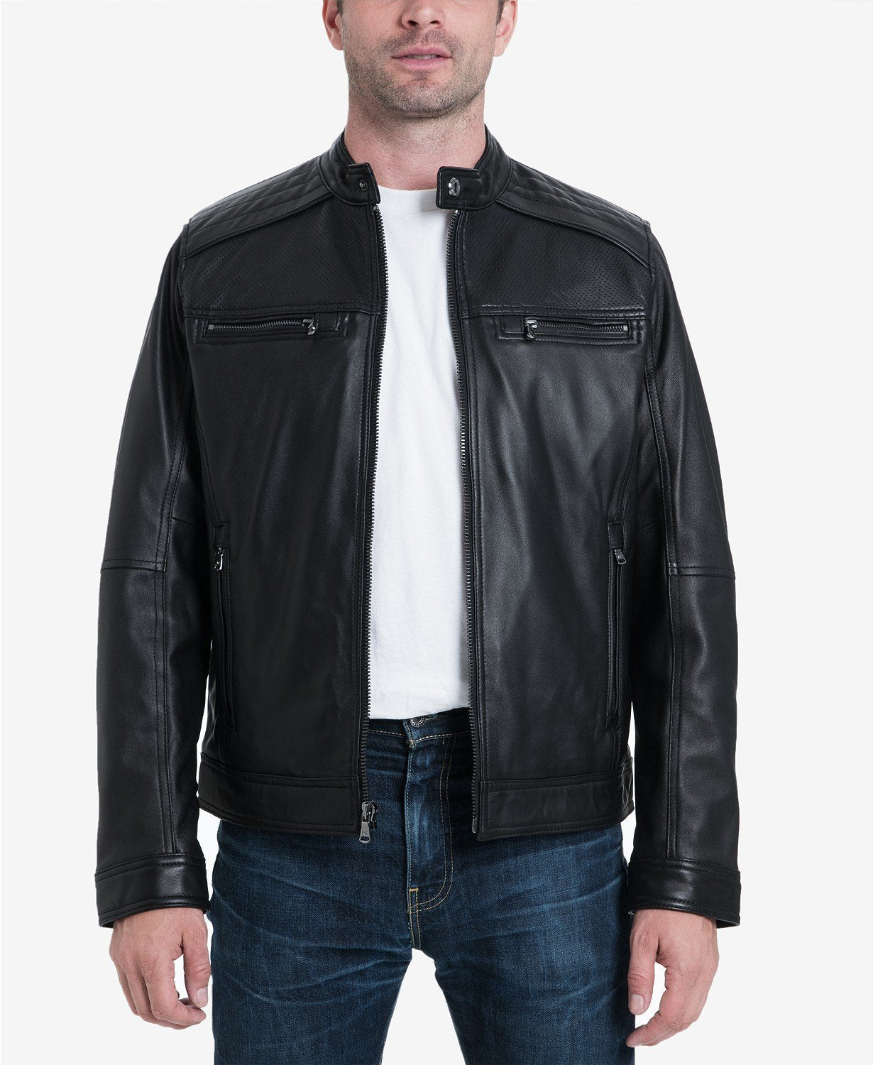 A classic silhouette freshened with perforations at the yoke, this moto jacket from MICHAEL Michael Kors is in soft leather for enduring style.