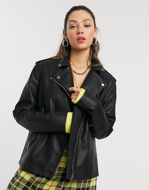 Pull&Bear faux leather biker jacket in blackBorn in the 90s, Pull&Bear aren't ones to...$39.99